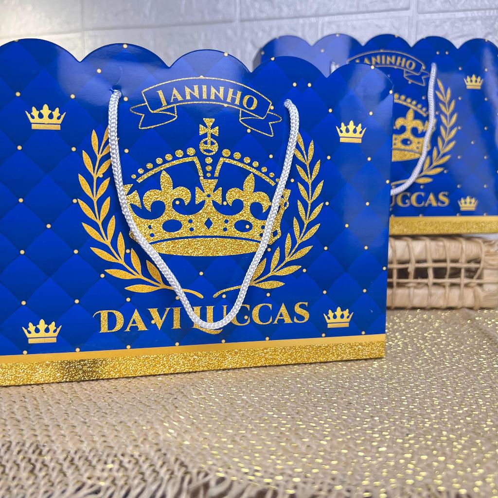 | Sacolinhas personalizadas para aniversário menino realeza coroa azu... este produto | R$ 74,85 | — | 4.9/5 | — |