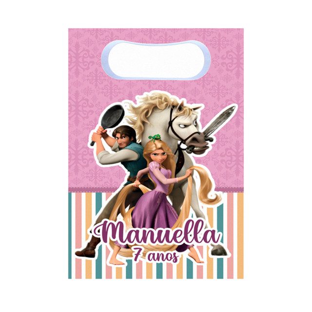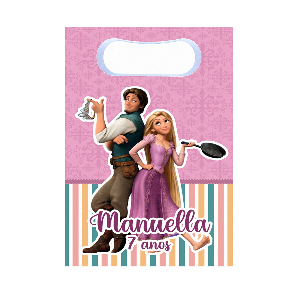 Sacolinhas Surpresa Enrolados Personalizada Lembrancinha para festa com nome e idade disney princesas rapunzel