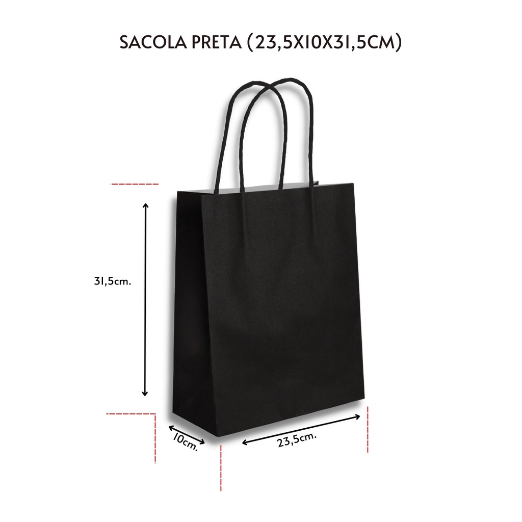 SACOLINHAS SURPRESAS LEMBRANCINHAS SACOLA PRETA (23,5X10X31,5CM) C/ 10 UN.