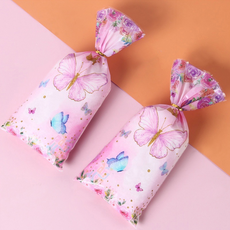 Sacos De 20pcs De Doces De Borboleta Cor-De-Rosa Biscoitos Para Festas De Aniversário De Meninas Decorações Casamento Festa Bebês