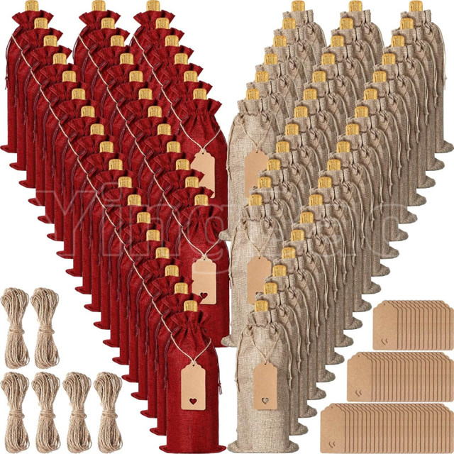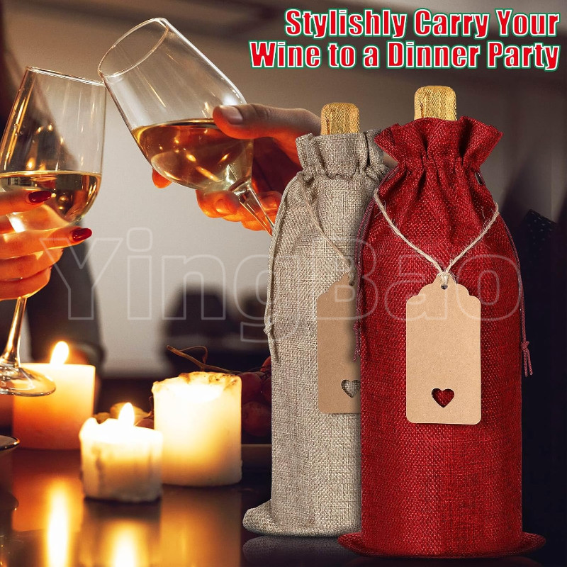 Sacos De Vinho De Serapilheira Premium De 6/12 Unidades Com Etiquetas De , Presente Reutilizáveis Cordões Garrafa Para C