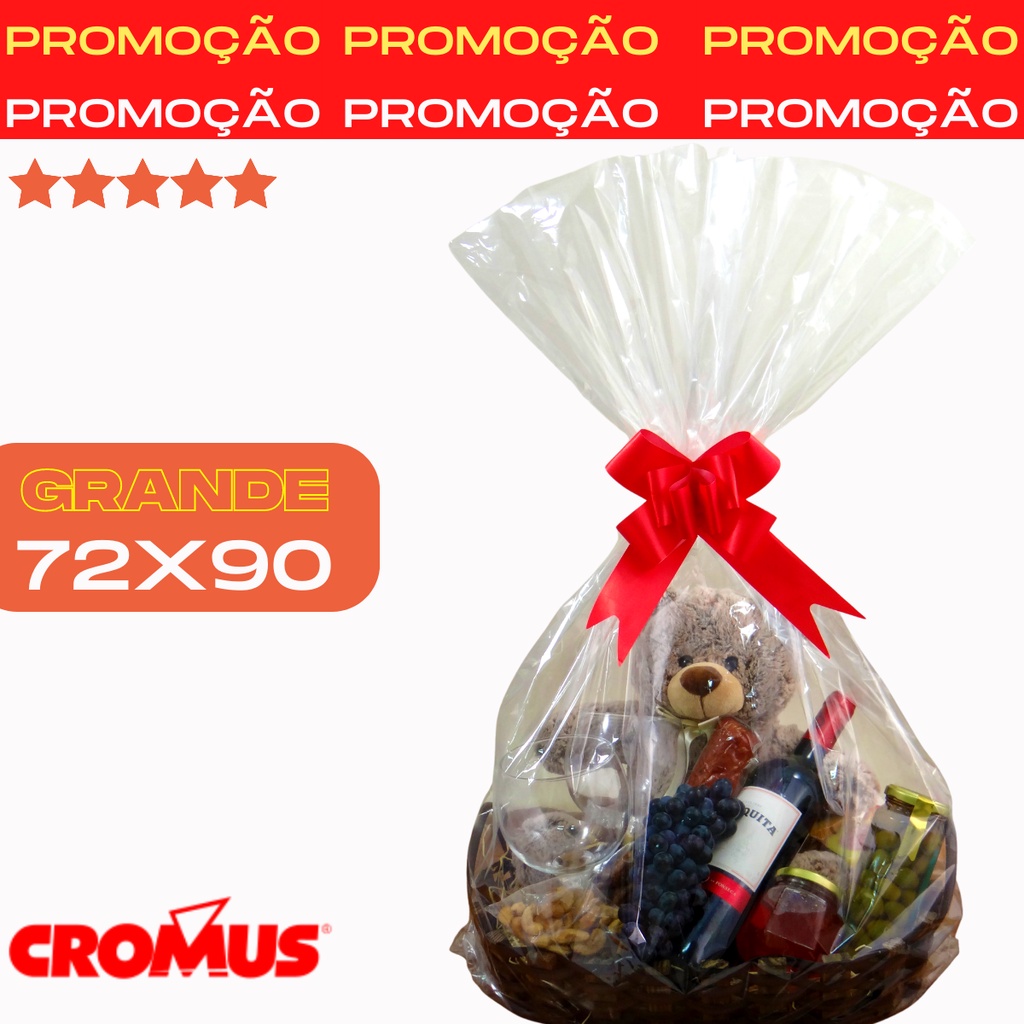 Sacos Presente Transparente Grande 72x90 Cestas Incolor 25un Embalagem Café Manhã Queijos Vinhos