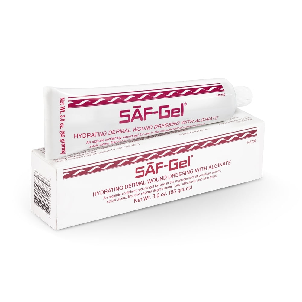 SAF-Gel é apresentado em tubo contendo 85g um gel hidratante e absorvente para feridas, não-estéril, composto de alginato de cálcio e sódio e carboximetilcelulose sódica num excipiente aquoso, transparente e viscoso; Cria um ambiente cicatricial úmido ideal que favorece o processo natural de cicatrização da ferida. Ao mesmo tempo que apresenta a capacidade de hidratar feridas secas, também apresenta a capacidade de absorver o exsudato da ferida.
