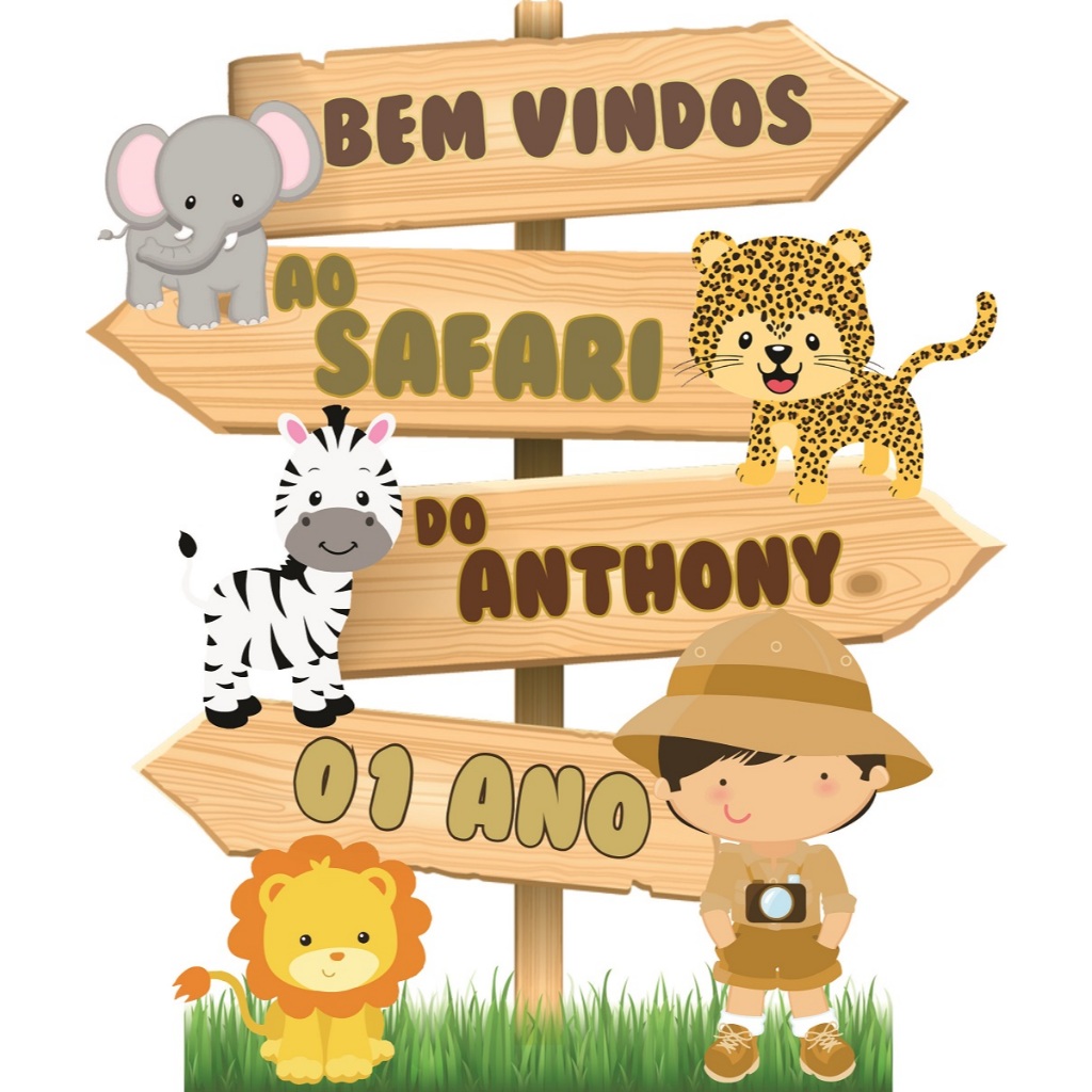 Safari placa bem vindos display safari menino em MDF festa e decoração