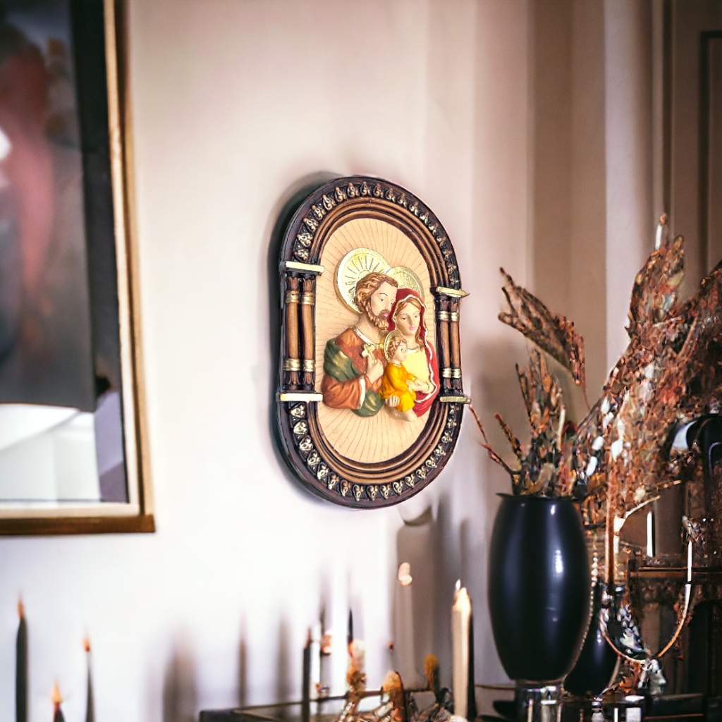 Sagrada Família 25cm RETRÔ C/ Revelo 3D Jesus Maria Jose Pintura Artesanal Gesso para Parede Decorativo