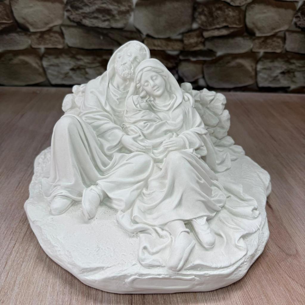 Sagrada Família Dormindo Na Pedra Em Gesso Cru