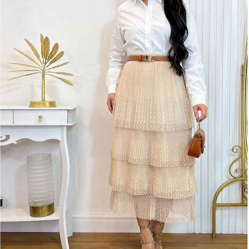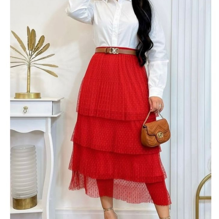 Cores Disponíveis: A saia está disponível em várias opções de cores, permitindo que você escolha a que mais combina com seu estilo. Tamanhos Disponíveis: P M G Adicione um toque de charme e elegância ao seu guarda-roupa com a nossa Saia Feminina Forrada Plissada em Tule. Com seu design sofisticado e romântico, essa peça é perfeita para diversas ocasiões, desde eventos sociais até passeios casuais. Descrição do Produto: Design Encantador: Com quatro camadas de tule plissado e babados, esta saia proporciona um movimento delicado e feminino, ideal para quem busca um visual diferenciado. Conforto e Ajuste: A saia é forrada, garantindo conforto e uma ótima caimento, permitindo que você se sinta à vontade durante todo o dia. Versatilidade de Uso: Combine com blusas, camisetas ou cropped para criar looks diversos, do casual ao mais arrumado. Essa saia é perfeita para festas, almoços ou passeios.