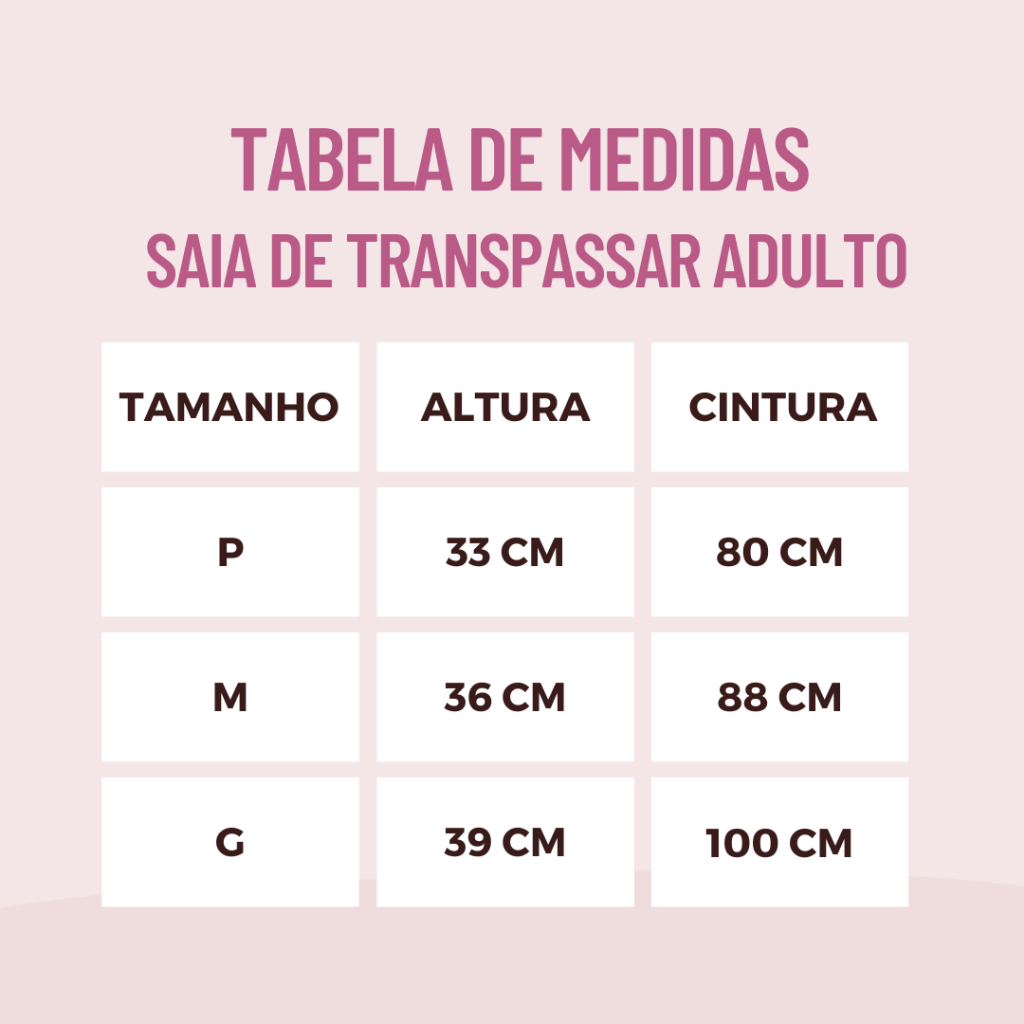 Saia Ballet ADulto Transpassada - Medidas na Descrição
