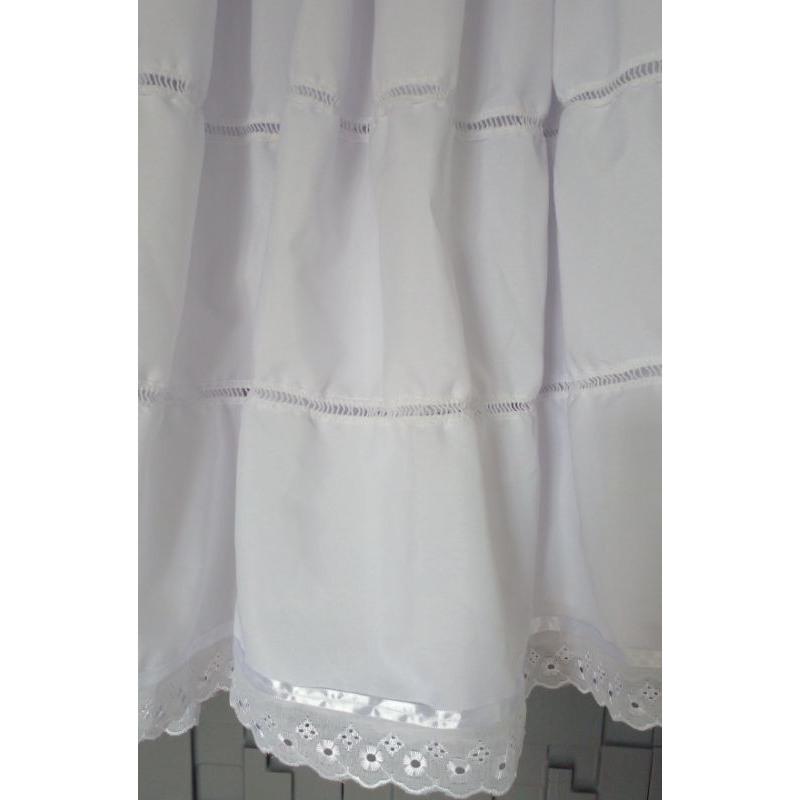 Saia com 4 metros de roda e 90cm de ALTURA, em tecido oxford. A cintura é produzida em elástico e cordão para um ajuste perfeito. Ela veste até número 52. Aviamentos renda, entremeio e fitas de cetim ( Podendo variar de acordo com a disponibilidade). Tecido leve e confortável. A saia n° 3 é confeccionada em tecido OXFORD OU MICROFIBRA podendo variar de acordo com a disponibilidade sem opção de escolha. A saia de RENDA GUIPPIR branca Com 4 metros de roda 90cm de altura.