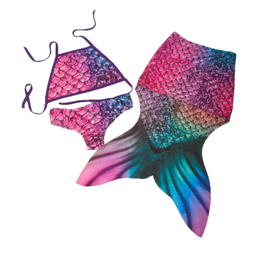 Saia Cauda De Sereia + Biquíni Infantil Juvenil Praia