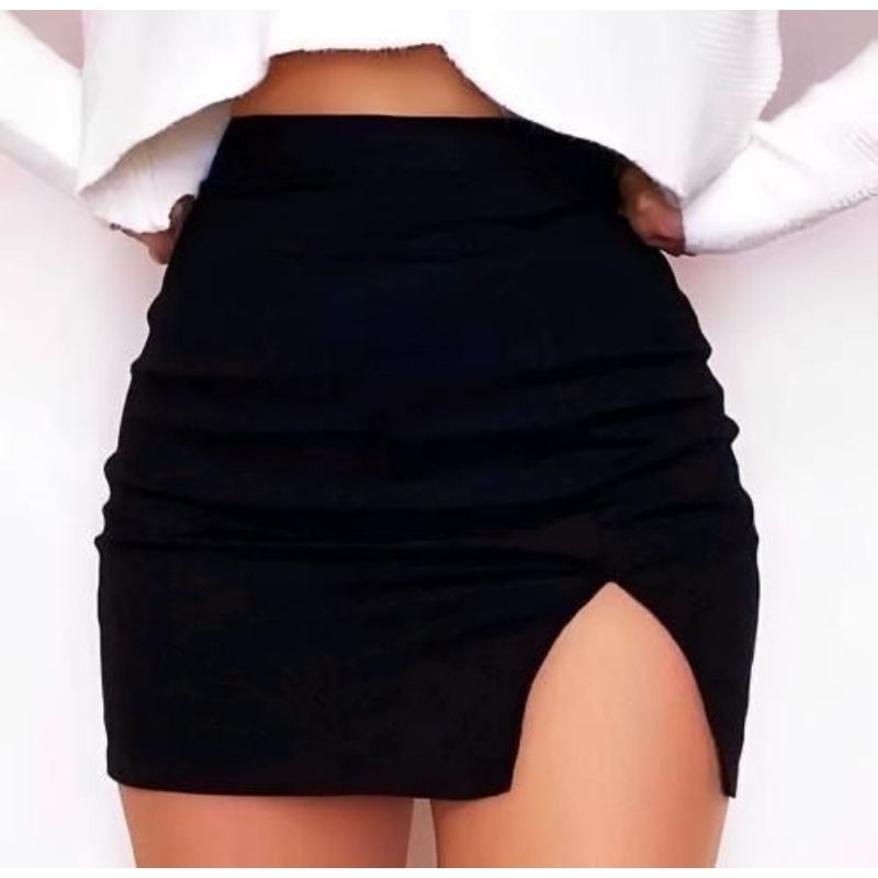 Saia curta feminina com fenda suplex