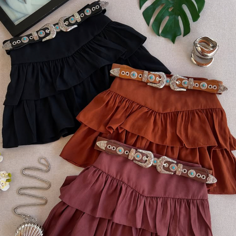 Saia Curta feminino novidade com Babados em Camadas liso look 2025 (P) (M) (G) (GG)