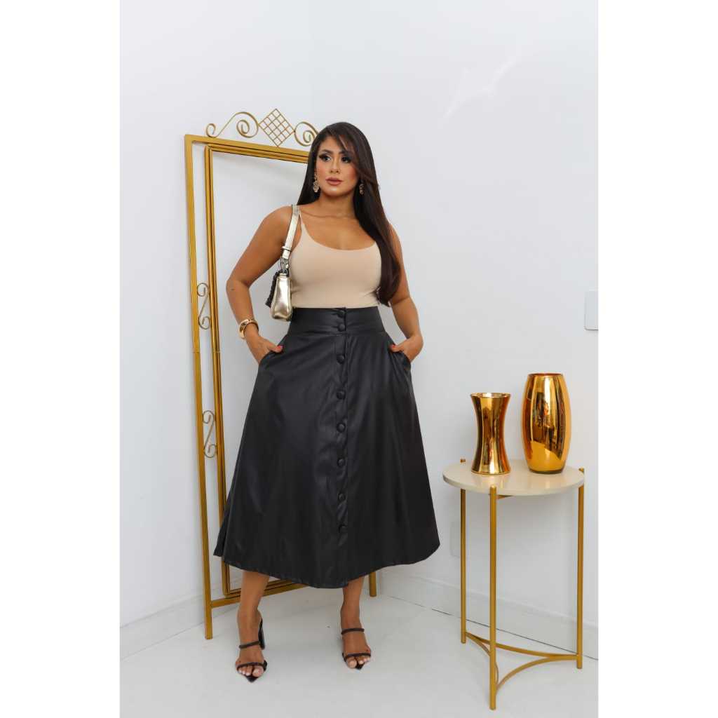 SAIA DE COURO LONGA COM BOTÕES NA FRENTE MEGA ESTILOSA