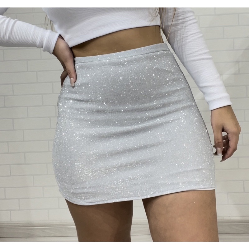Saia de Lurex Cintura Alta Glamour SXY Festas Balada Eventos Casual Moda Gringa 2025