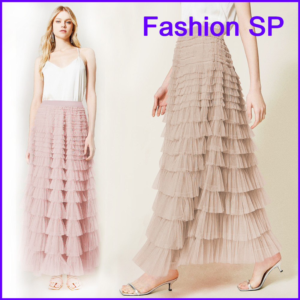 Saia De Malha Feminina Com Babados Saia De Gaze Doce Saia Longa Plissada