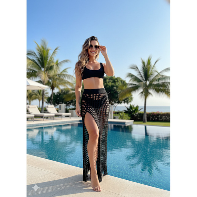 | Saia de Praia Longa Franjas Abertura Lateral Tricot Verão este produto | R$ 39,90 | 20% | 4.9/5 | 72 |