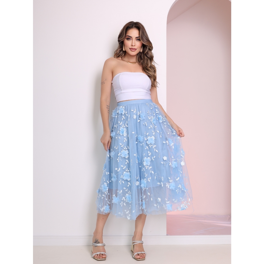 Saia De Tule Com Bordados De Flores Com Melhor Qualidade Do BRASIL Fotos Reais