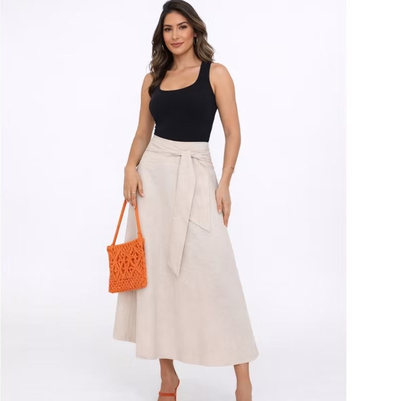 saia femenina Midi em linho