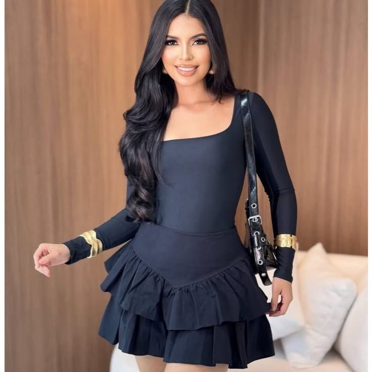 ENVIO IMEDIATO PARA TODO BRASIL!!! A Saia Feminina Curta Babado Rodada Zíper Gringa Crepe Camadas é a escolha perfeita para fazer uma declaração de estilo a cada passo. Com seu design de babados rodados, ela garante um look leve e fluido, ideal para diversas ocasiões, desde um passeio informal até um encontro especial. O comprimento curto e a cintura média proporcionam conforto e um ajuste perfeito, destacando a silhueta de maneira elegante. Feita em crepe, esse material confere não apenas um caimento incrível, mas também facilita a manutenção. A faixa de zíper garante praticidade ao vestir, enquanto as camadas delicadas criam um visual jovial e divertido. Combine-a com blusas e acessórios variados para criar composições únicas que refletem a sua personalidade. Essa saia é uma peça versátil no guarda-roupa feminino, permitindo diversas combinações com calçados e complementos. Se você busca conforto sem abrir mão do estilo, esta saia se torna uma adição indispensável ao seu vestuário. Experimente a liberdade de movimento e a confiança que uma peça bem feita pode oferecer no seu dia a dia. Tamanhos disponíveis: P (veste 36) M (veste 38) G (veste 40) GG (veste 44) Cores disponíveis: Preto, Branco e Marrom Indicação de uso: Ideal para looks casuais, festas, baladas e passeios. Combina bem com croppeds, blusas ajustadas, camisas leves e jaquetas curtas.