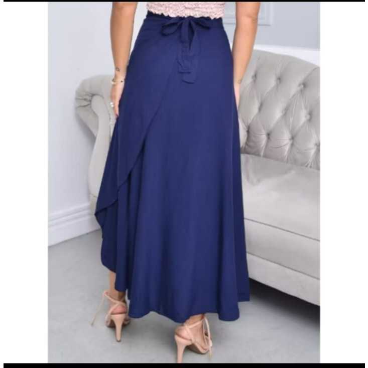SAIA FEMININA ENVELOPE LONGA TRANSPASSADA ELEGANTE AZUL COM AMARRAÇÃO PLUS SIZE E SLIM