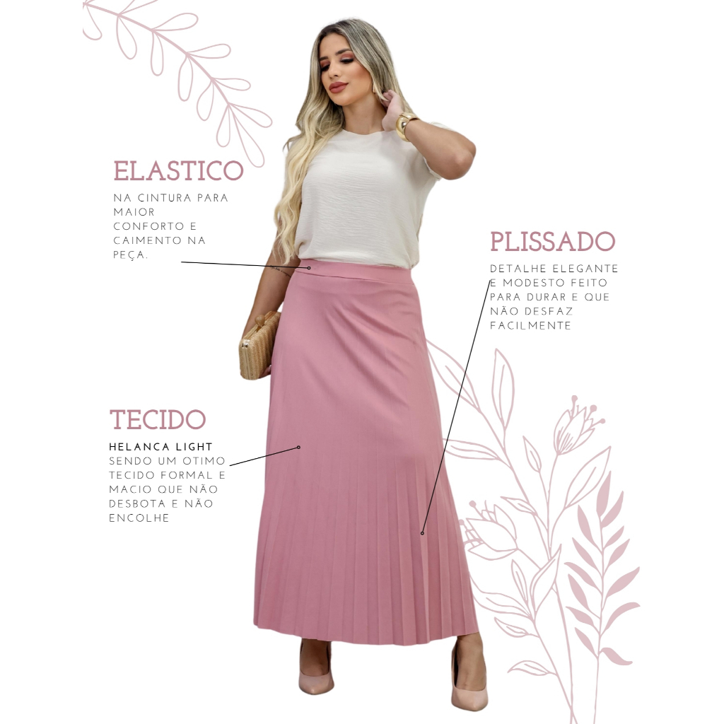 Saia Feminina Longa Plissado com Forro e Elastico na Cintura Moda Crista e Evangelica