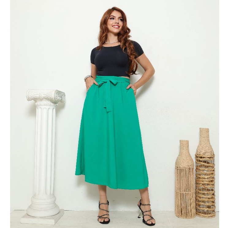 Saia midi em viscolinho com caimento impecável! Modelo evasê superconfortável, com bolsos e amarração frontal que valoriza o look. Possui forro parcial no quadril, evitando transparência sem perder a leveza. Peça prática, estilosa e versátil — ideal para criar looks modernos em qualquer ocasião! Tamanhos: M cintura 70 /comprimento 85/ quadril 120 G cintura 74/ comprimento 85/ quadril 125 GG cintura 80 /comprimento 85/ quadril 130