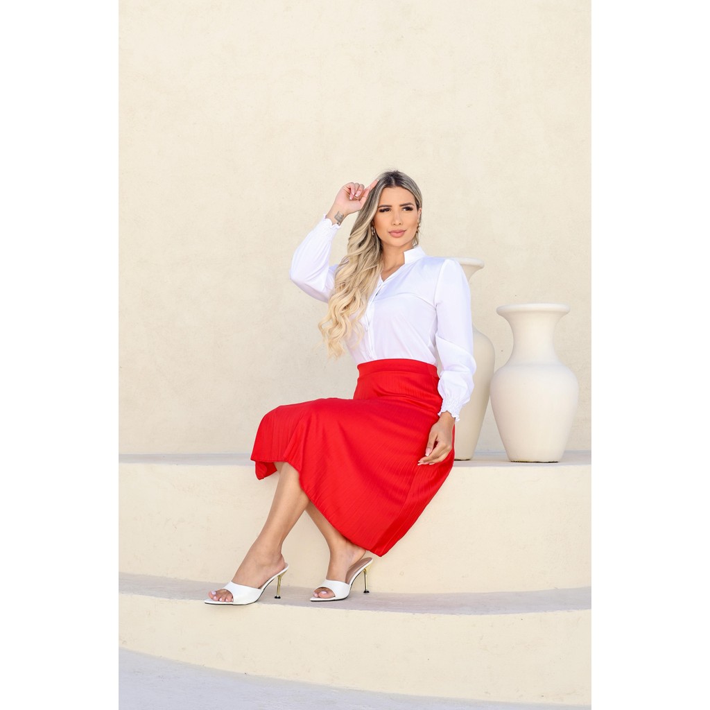 | Saia Feminina Midi Plissado Com Forro em Helanca com Cintura Alta ... este produto | R$ 21,80 | 5% | 4.9/5 | — |