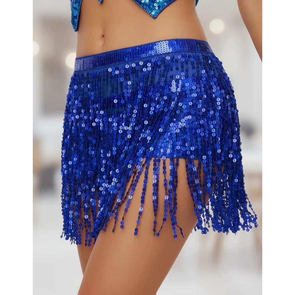 Saia Feminina Paetê Carnaval Festa Franja Dança Ventre Tamanho Único