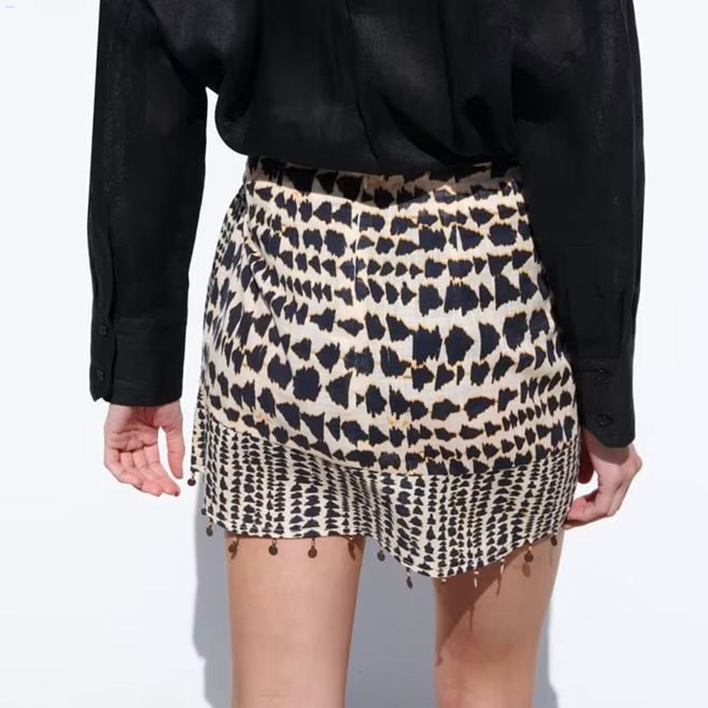 Saia Geométrica Vintage Feminina De Embrulho Curto Com Nó De Impressão Mini Sarong