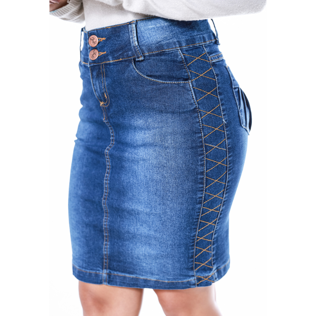 Saia Jeans Claro Com Botões Simétricos Da Moda Feminina Evangélica Cristã Ref: 15A
