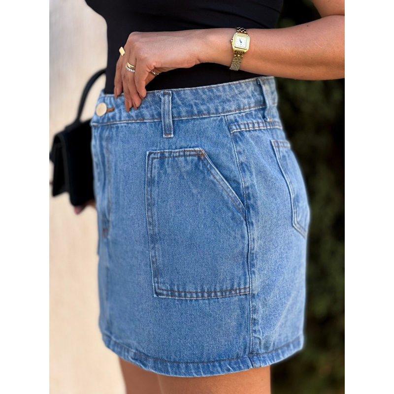 Saia Jeans Feminina Cintura Alta saia midi saia colorido sem rascada 145 146
