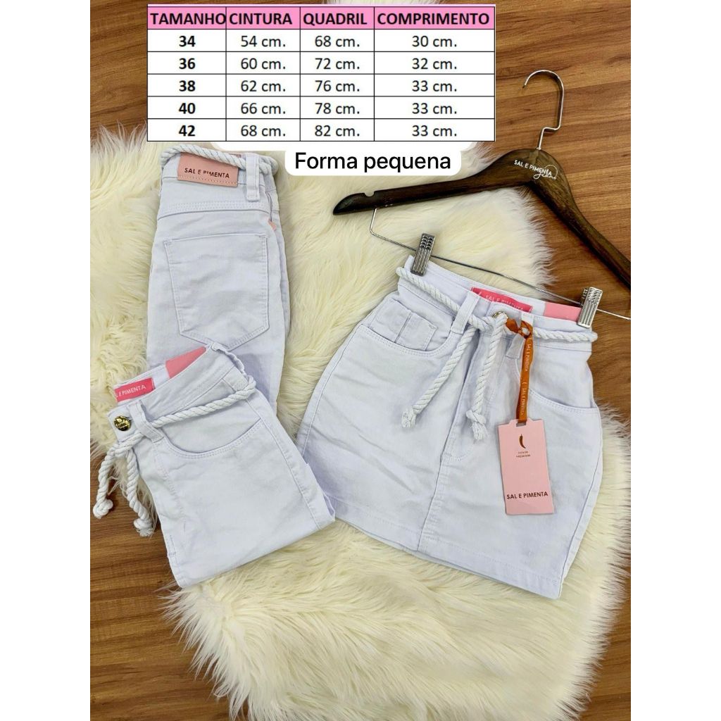 SOMOS REVENDEDORES OFICIAIS E AUTORIZADOS DA SAL E PIMENTA - PIMENTA ORIGINAL. *Trabalhamos somente como produtos ORIGINAIS e com NOTA FISCAL. Esclarecemos que todos os nossos modelos possui lycra/elastano. Disponibilizamos em cada modelo a tabela de medidas individual, para ajudar na escolha do tamanho ideal. As cores podem sofrer alterações devido a saturação/brilho de alguns aparelhos (tablete, smartphone, computadores). ** PERGUNTAS FREQUENTES ** - Tem elastano? Sim, todos os modelos de saia possui elastano/lycra na composição, entre 3 e 5%, portanto estica bem. - É forma pequena ou grande? Disponibilizamos nos modelos as medidas aproximadas, para que compare com suas medidas pessoais para escolher o tamanho ideal. Use uma fita métrica para medir, com uma saia sua aberta e esticada, meça o quadril e a cintura de uma ponta a outra, somente a frente e multiplique por dois, com essas medidas, compare com a nossa tabela, lembrando que os modelos possui lycra/elastano, portanto esticam bem. #saia feminina,jeans feminina #saia jeans #saia sal e pimenta,jeans feminina #saia pimenta doce,jeans feminina #saia pimenta original,jeans feminina #jeans feminina