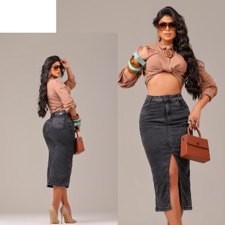 A saia jeans com fenda frontal modelo midi e com elastano é uma peça versátil e estilosa que combina conforto e elegância. O comprimento midi oferece um equilíbrio perfeito entre o clássico e o moderno, enquanto a fenda frontal adiciona um toque de ousadia ao visual. O elastano na composição do tecido garante flexibilidade e ajuste ao corpo, proporcionando liberdade de movimento sem comprometer o estilo. Essa saia é ideal para diferentes ocasiões, podendo ser combinada com uma camiseta básica e tênis para um look casual, ou com uma blusa mais sofisticada e salto alto para um evento mais formal. Além disso, o jeans é um material atemporal, que nunca sai de moda, garantindo que essa peça seja um investimento seguro para o guarda-roupa.