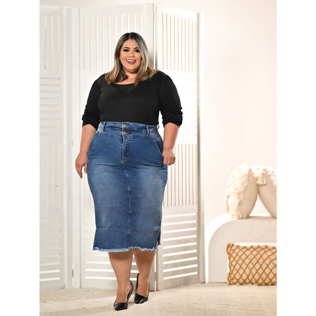 Saia Jeans Midi Plus Size com Recorte na Perna - Anagrom Ref. 249 Adicione um toque de estilo e modernidade ao seu guarda-roupa com a Saia Jeans Midi Plus Size com Recorte na Perna da Anagrom. Esta saia foi cuidadosamente projetada para proporcionar conforto, elegância e um visual diferenciado, ideal para mulheres que seguem a moda evangélica. Características: Cor: Azul Material: Jeans de alta qualidade, resistente e confortável Modelo: Recorte na perna, oferecendo um design único e contemporâneo Tamanho: Plus Size, garantindo um ajuste perfeito para todos os corpos Comprimento: Midi, ideal para eventos formais e informais Detalhes: Acabamento impecável e costuras reforçadas, garantindo durabilidade Destaques: Versatilidade: Combina facilmente com blusas, camisas e acessórios diversos Conforto: Tecido leve e confortável, perfeito para o uso diário Estilo: Design moderno e elegante, ideal para a moda evangélica Indicações de Uso: Ideal para eventos religiosos, reuniões sociais e compromissos do dia a dia Perfeita para criar looks sofisticados e discretos, sem abrir mão do conforto Adquira já a sua Saia Jeans Midi Plus Size com Recorte na Perna da Anagrom e destaque-se com um visual elegante e versátil. Disponível nos melhores tamanhos para você!