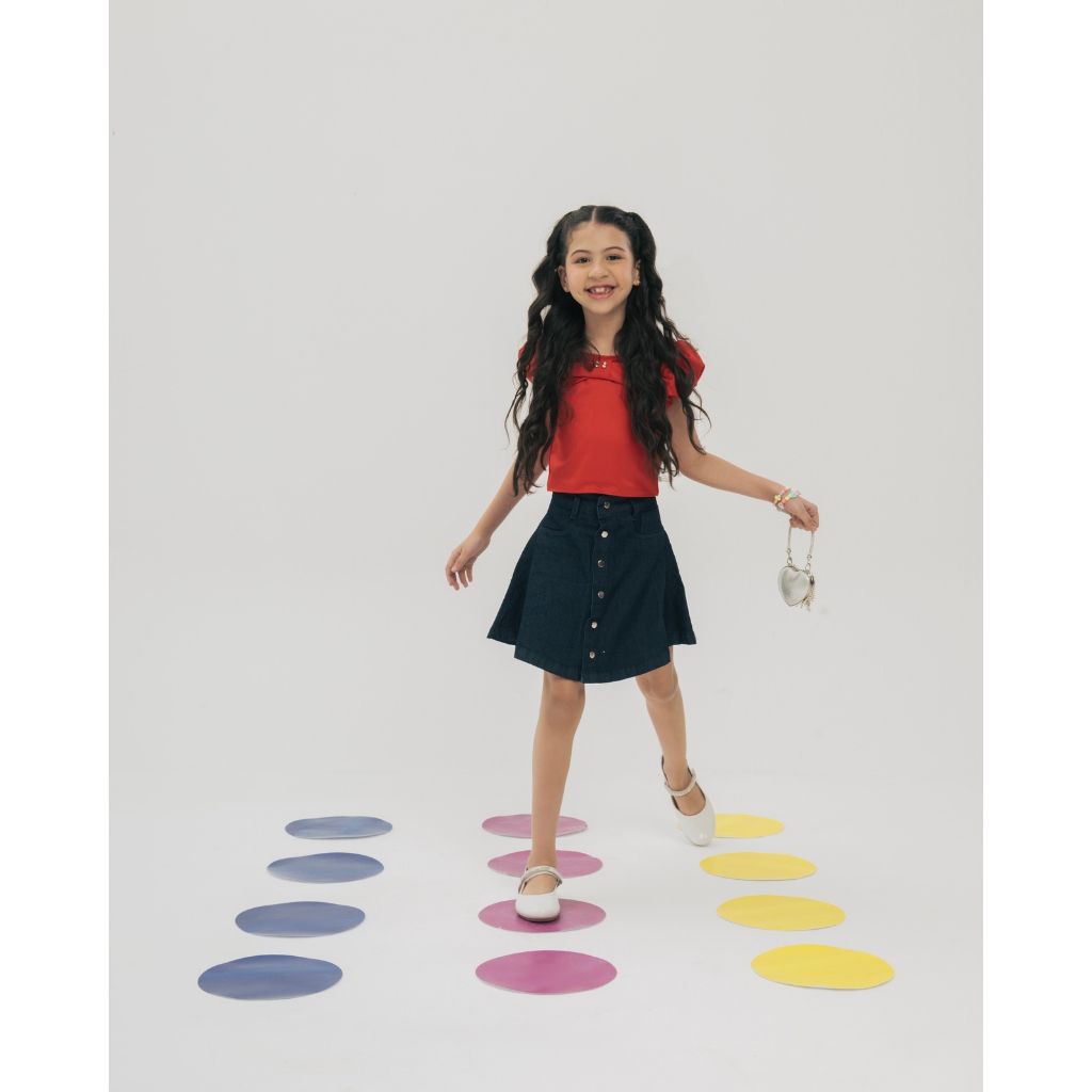 Saia Jeans Moda Evangélica Evasê Aberta Juvenil 7PALLAS