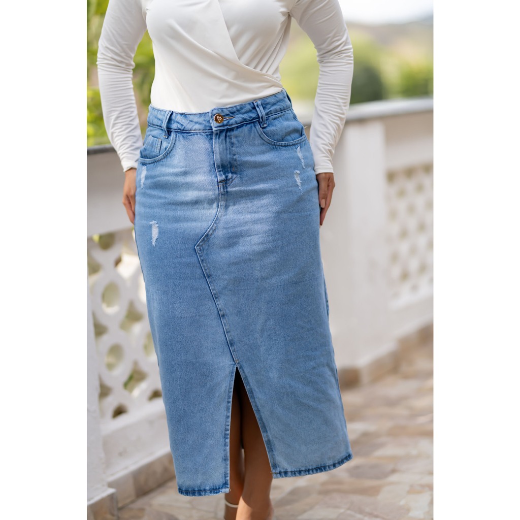 Saia Jeans Moda Evangélica Feminina De Luxo Alto Padrão Cintura Alta REF: 1228