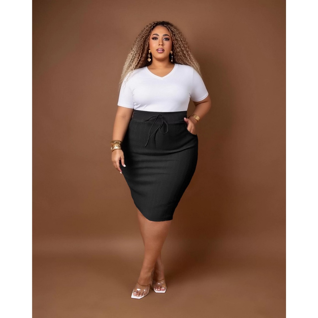 Saia Lápis Casual de bolso Midi Moda Plus Com Elastano.