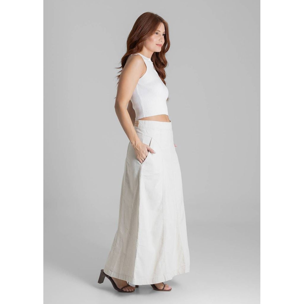 Saia confeccionada em linho. O comprimento é midi e o caimento é solto. Cintura alta Fechamento por ziper na parte posterior. Bolsos frontais diferenciados Barra simples Modelagem: Longa Tecido: Linho Cor: Areia Composição: 86% ALGODÃO 14%LINHO Tipo de lavagem: AMACIADO