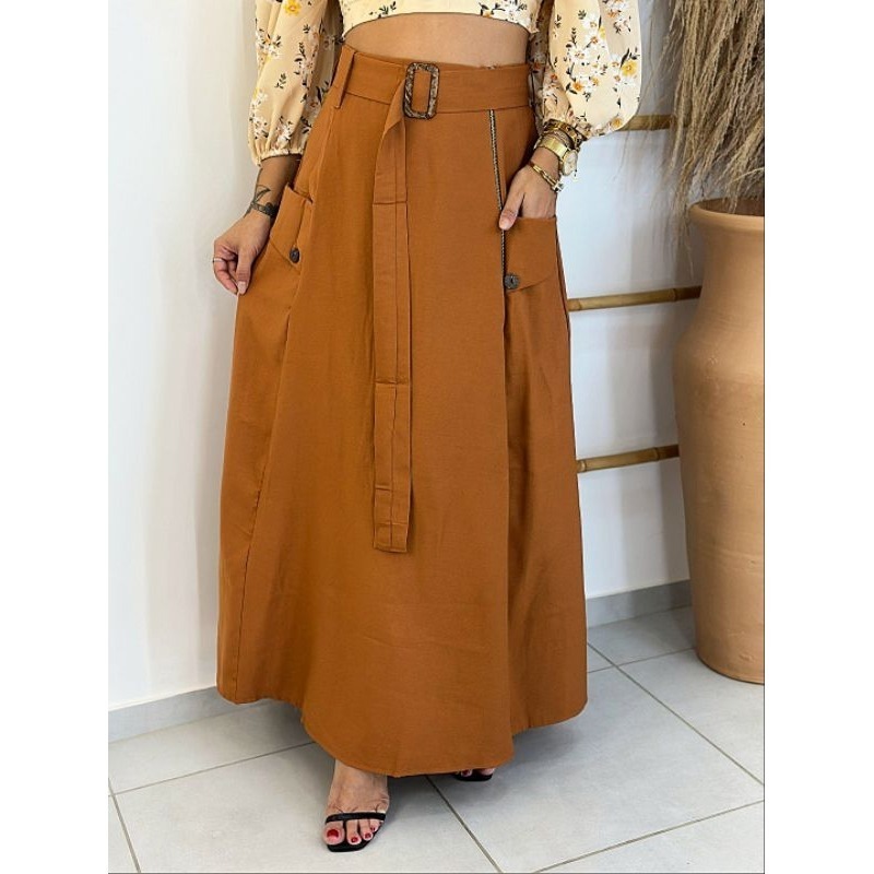 Saia Longa Alfaiataria com Bolso Fenda e Ziper na Lateral Cinto Exclusivo Tendência