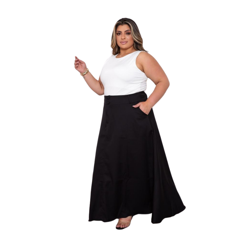 Saia Longa Alfaiataria Plus Size Bolsos Funcionais Moda Grande – Elegante e Confortável