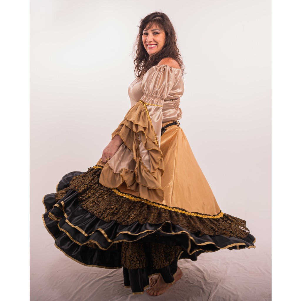 Saia Longa Cigana Modelo 2 Babados com 14 metros de roda Dança Cigana Pomba Gira Cigana Madalena