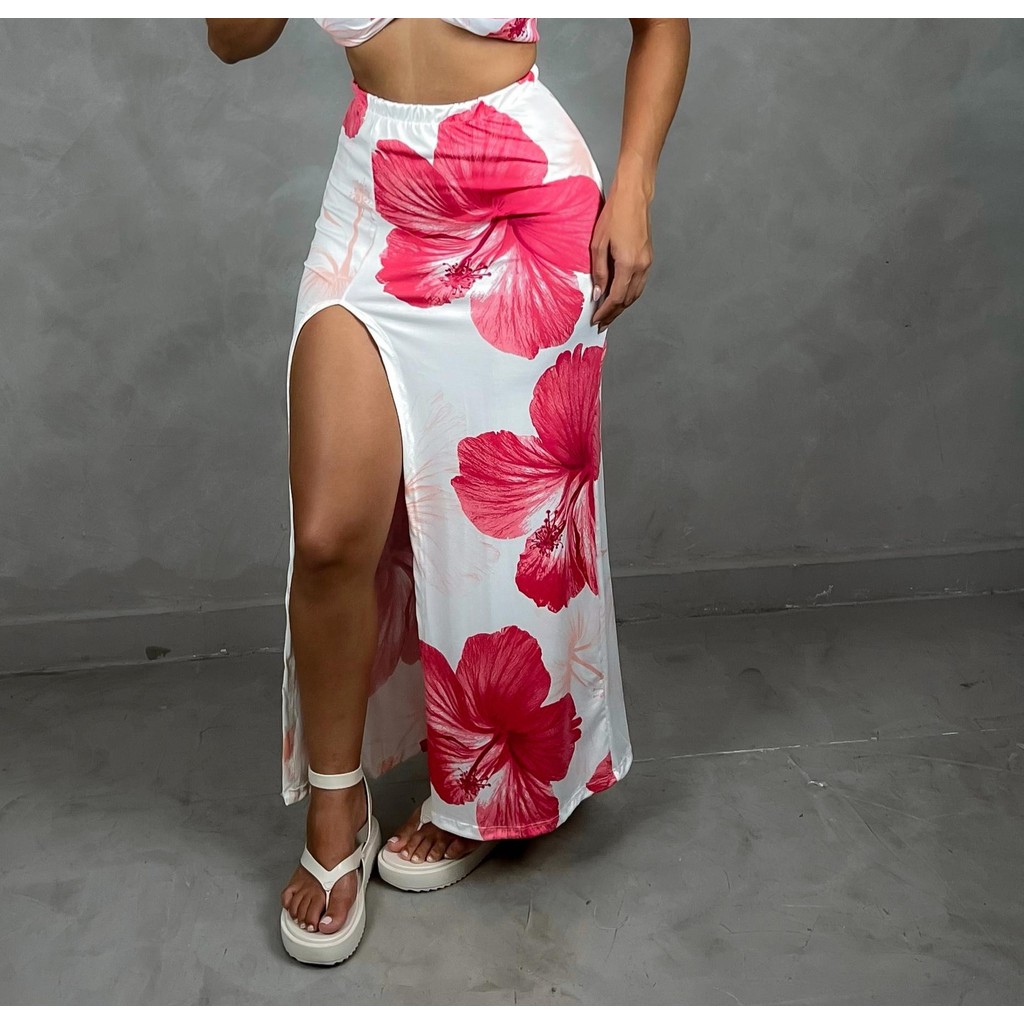 Saia Longa Estampada Feminina Suplex Com Elastano E Fenda