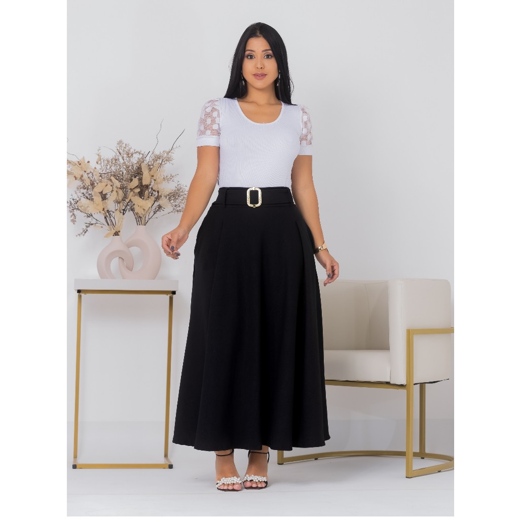 Saia Longa Feminina Elegante Sensorial com Bolsos – Moda Evangélica Igreja