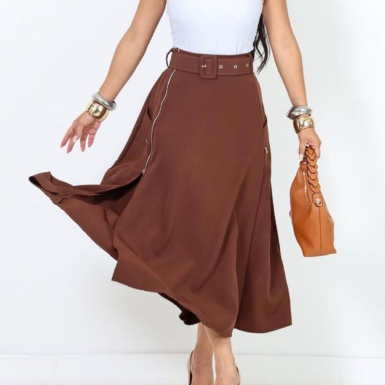saia longa feminina social alfaiataria Com Bolso e Ziper Destacavel elegante COM CINTO FORRADO