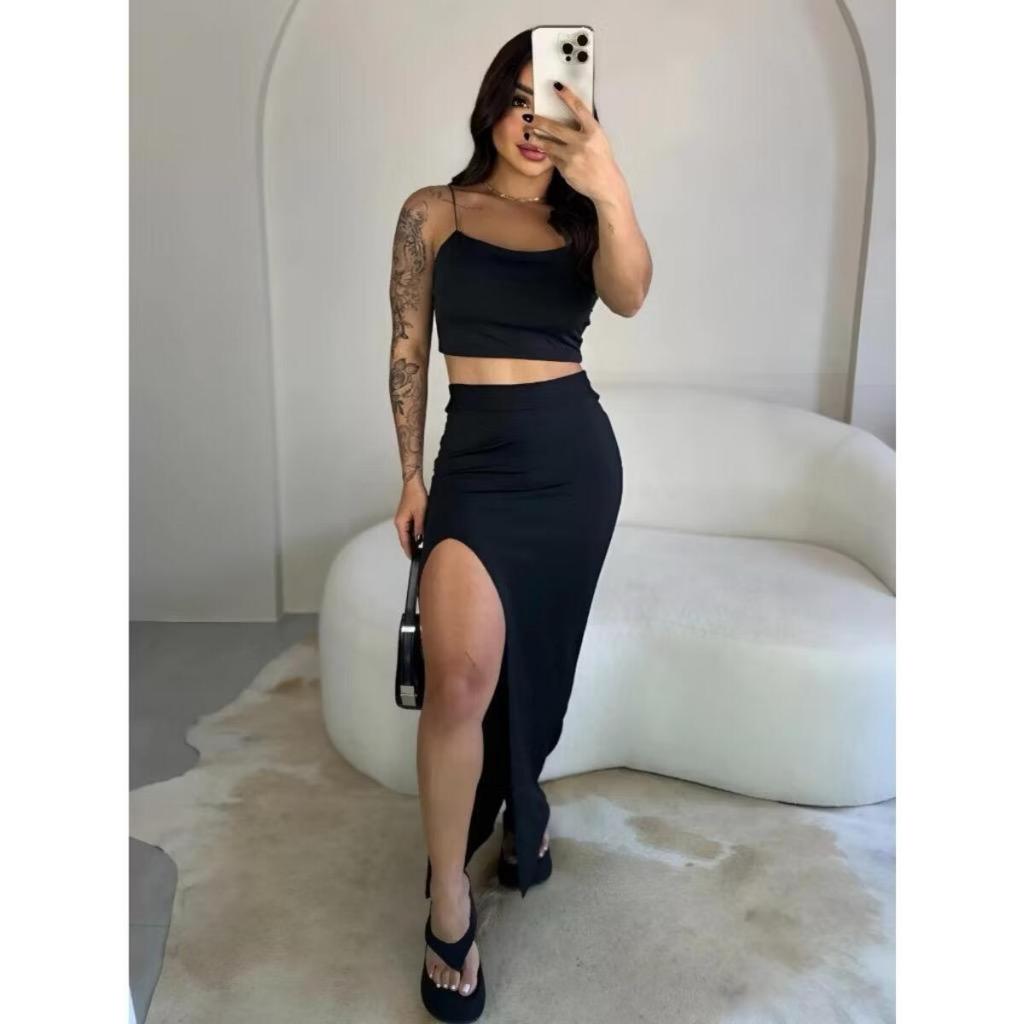 Saia Longa Fenda Feminina Modinha Suplex Verão Longuete Blogueira Moda Gringa