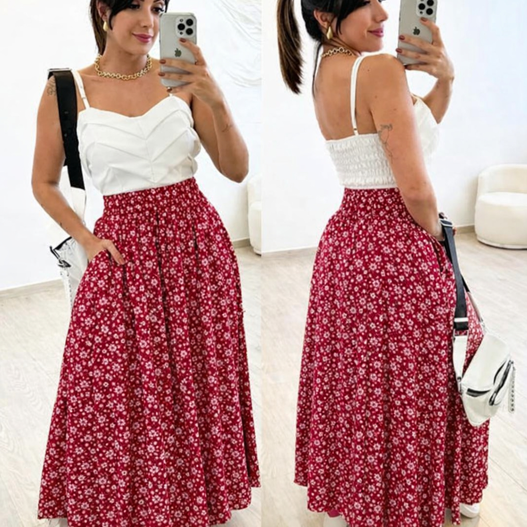 Saia Longa Floral Feminina Cintura Alta com Fendas Laterais Estilo Casual Elegante