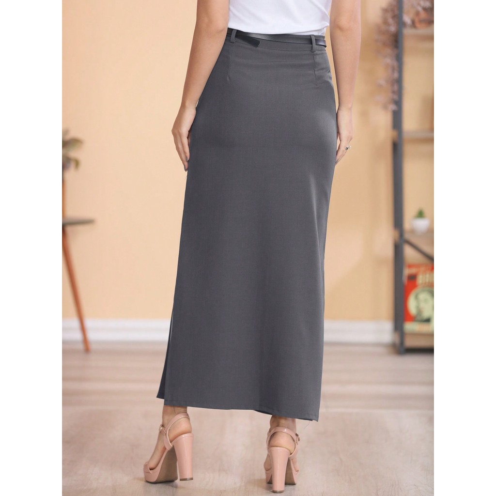 Saia longa linho dois cor com cinto preto Igreja/Fendas em ambos os lados botão/Verão/Eleganten Estiloso/Coleção 2025