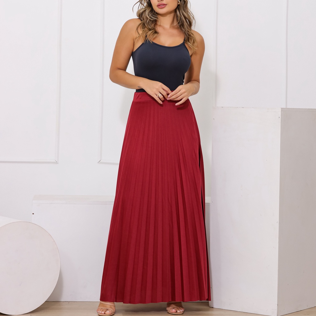 Saia Longa Lisa Plissada Moda Evangelica Forrada