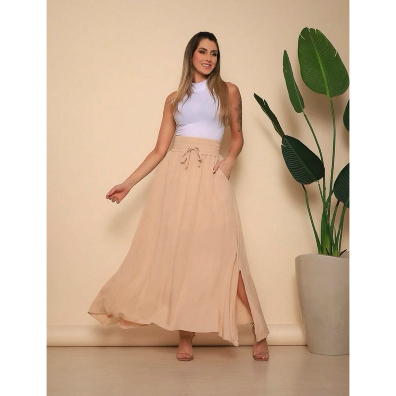 | SAIA LONGA VISCOLINHO FEMININA COM BOLSOS COM FENDA LATERAL MODA EV... este produto | R$ 42,90 | — | 4.8/5 | 17 |