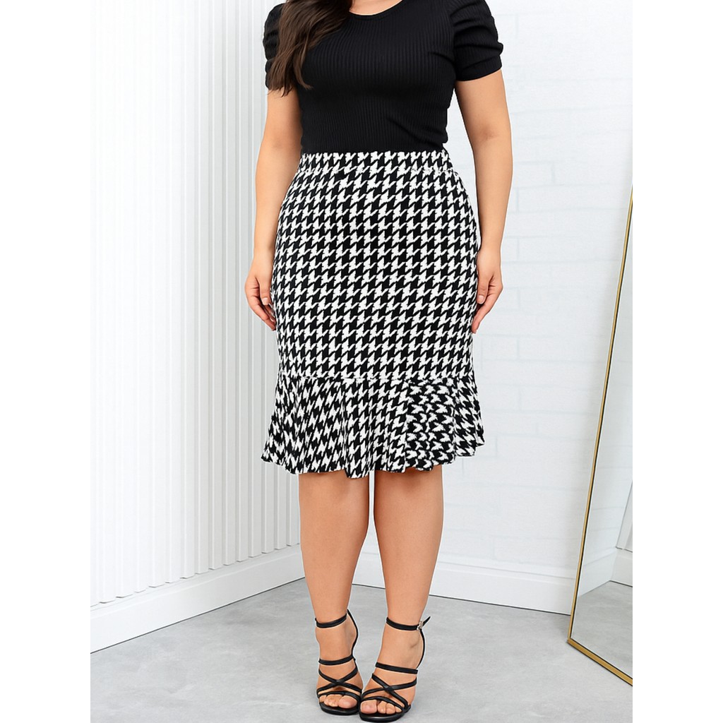 Saia Mídi Babado Moda Feminina Malha Premium Estampa Pe de Pule Casual